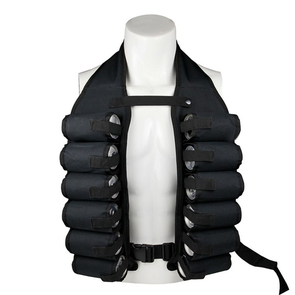 Denna ölväst kan hålla upp till 12 burkar som alla är säkrade med kardborreband.