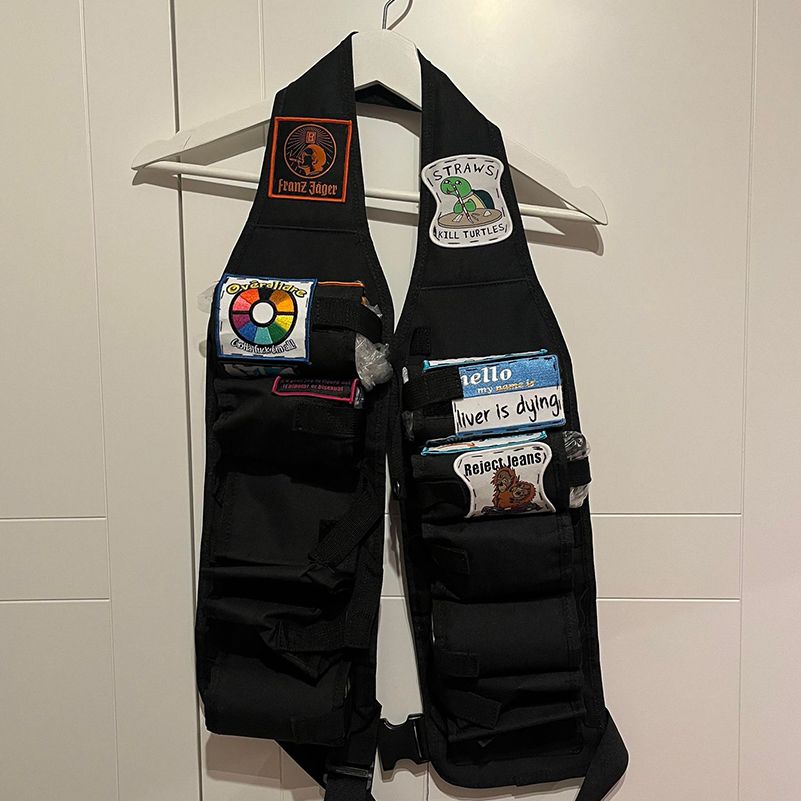 Denna väst är obligatoriskt under långa dagsfester då den ser till att du aldrig är törstig.